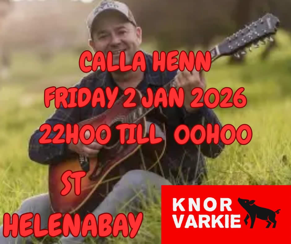 Calla Henn Live Calla Henn Live + Add to Google Calendar + iCal / Outlook export Date Jan 02 2025 Expired! Time 10:00 pm - 11:55 pm Location Knor Varkie St Helena Bay De Palm Lifestyle Centre, 7 Shearwater St, Britannica Heights, St Helena Bay Category Knor Varkie St Helena Bay Live Music Share this event