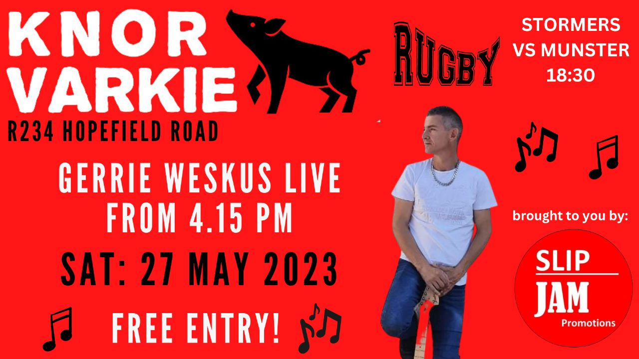 Gerrie Weskus Live Gerrie Weskus Live + Add to Google Calendar + iCal / Outlook export Date May 27 2023 Expired! Time 4:00 pm - 11:00 pm Location River Shack @ Knor Varkie Velddrift Share this event