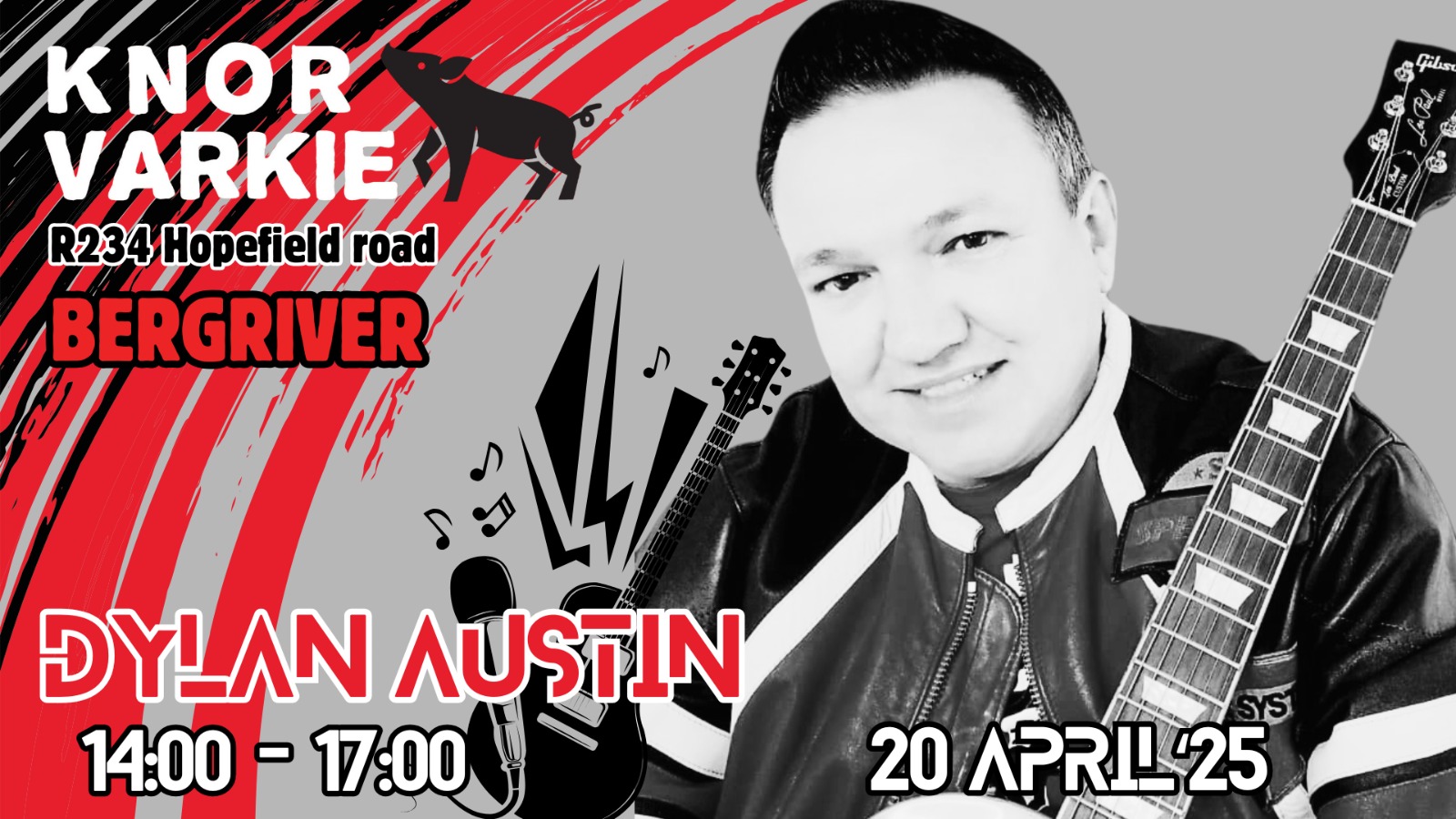 Dylan Austin Live Dylan Austin Live + Add to Google Calendar + iCal / Outlook export Date Apr 20 2025 Expired! Time 2:00 pm - 5:00 pm Location River Shack @ Knor Varkie Velddrift Category Live Music River Shack Share this event
