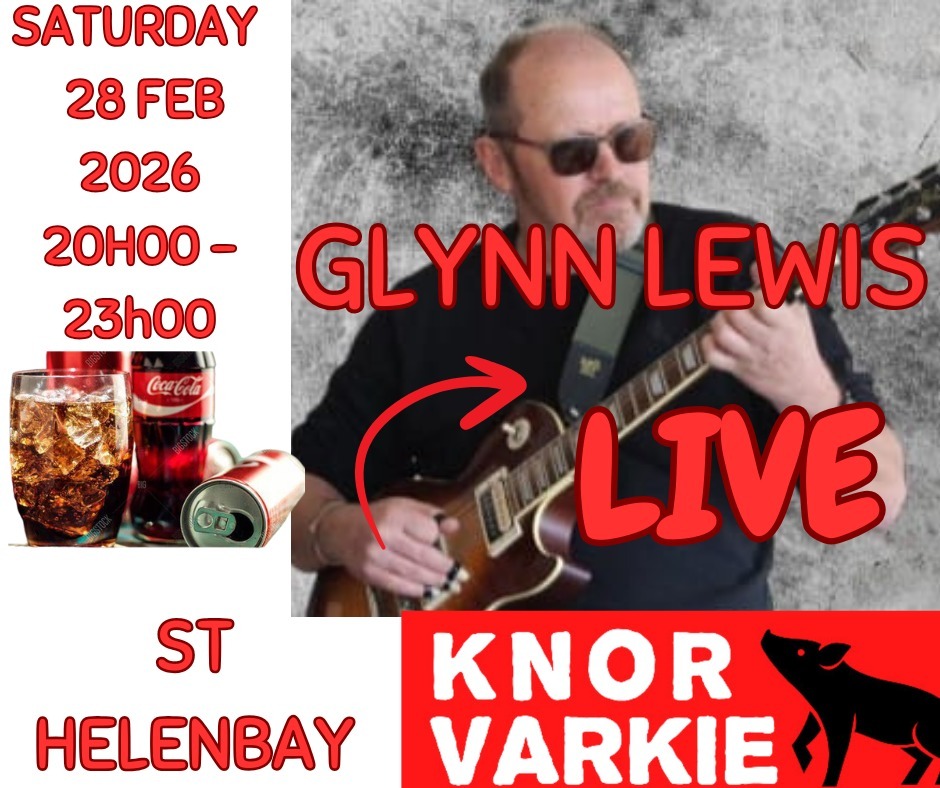Glenn Lewis Live Glenn Lewis Live + Add to Google Calendar + iCal / Outlook export Date Feb 28 2026 Expired! Time 8:00 pm - 11:00 pm Location Knor Varkie St Helena Bay De Palm Lifestyle Centre, 7 Shearwater St, Britannica Heights, St Helena Bay Category Harbour Light Lounge Knor Varkie St Helena Bay Live Music Share this event