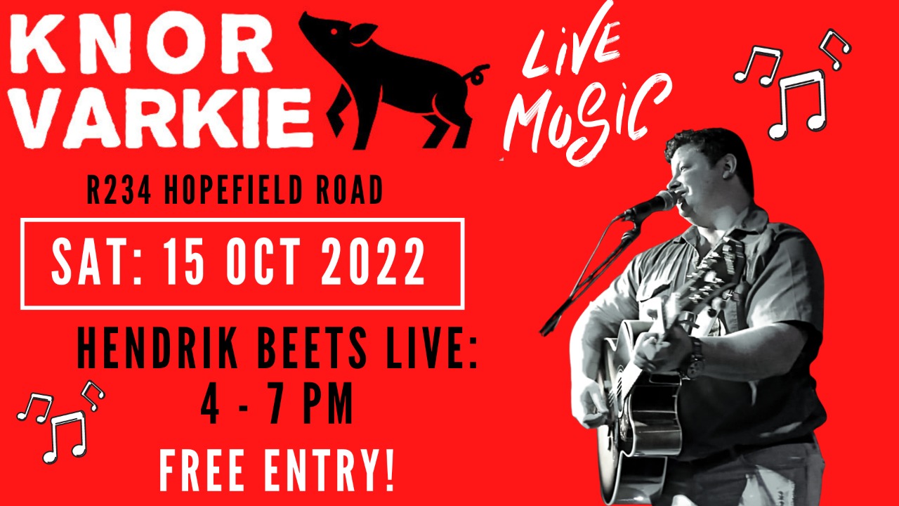 Hendrik Beets Live Hendrik Beets Live + Add to Google Calendar + iCal / Outlook export Date Oct 15 2022 Expired! Time 4:00 pm - 7:00 pm Location River Shack @ Knor Varkie Velddrift Category Live Music Share this event