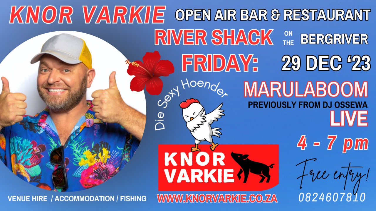 Marulaboom Live Marulaboom Live + Add to Google Calendar + iCal / Outlook export Date Dec 29 2023 Expired! Time 4:00 pm - 7:00 pm Location River Shack @ Knor Varkie Velddrift Category Live Music Share this event