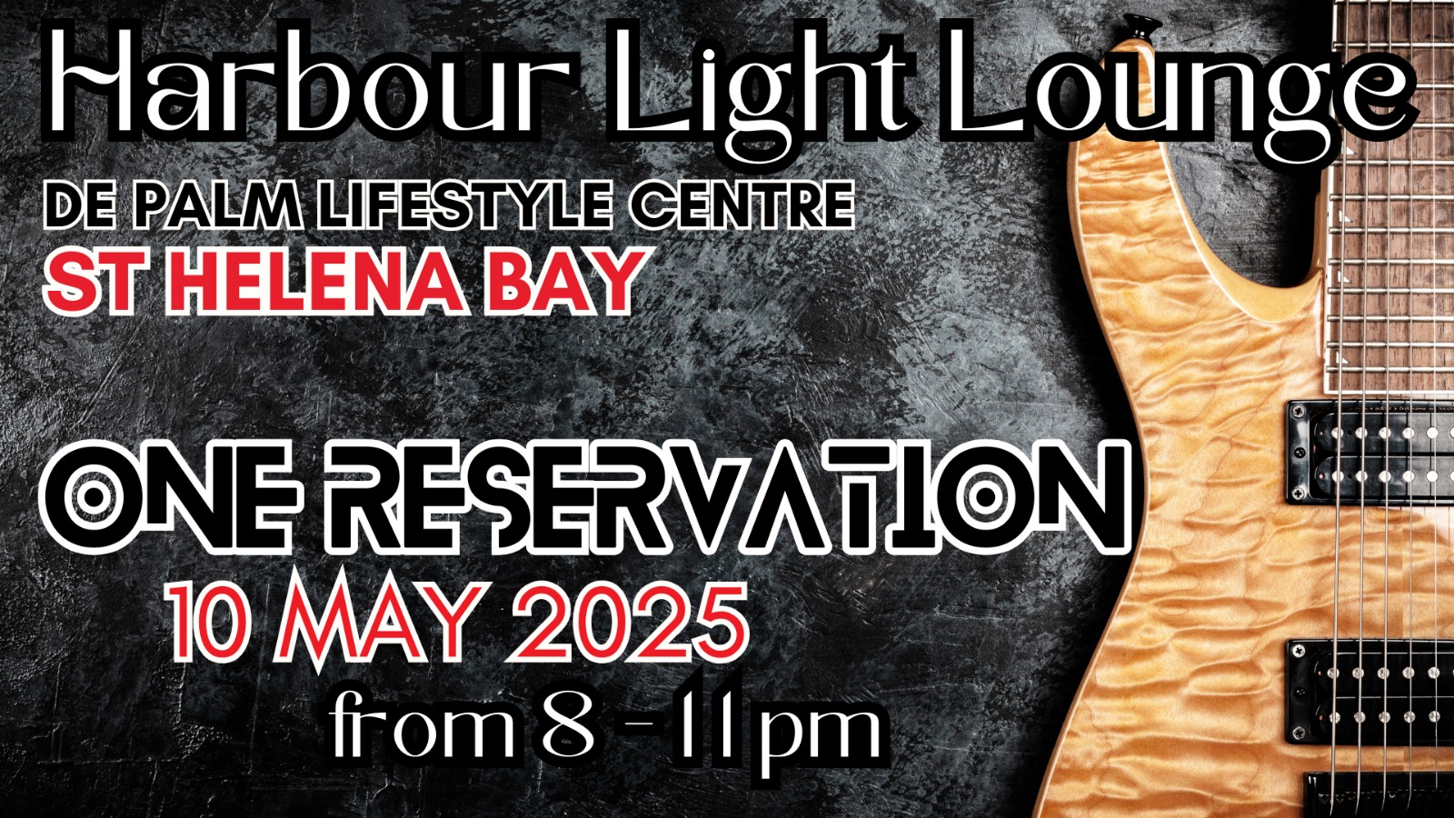 One Reservation Live One Reservation Live + Add to Google Calendar + iCal / Outlook export Date May 10 2025 Expired! Time 8:00 pm - 11:00 pm Location Harbour Light Lounge De Palm Life Centre, 7 Shearwater Rd, St Helenabay Category Harbour Light Lounge Live Music Share this event